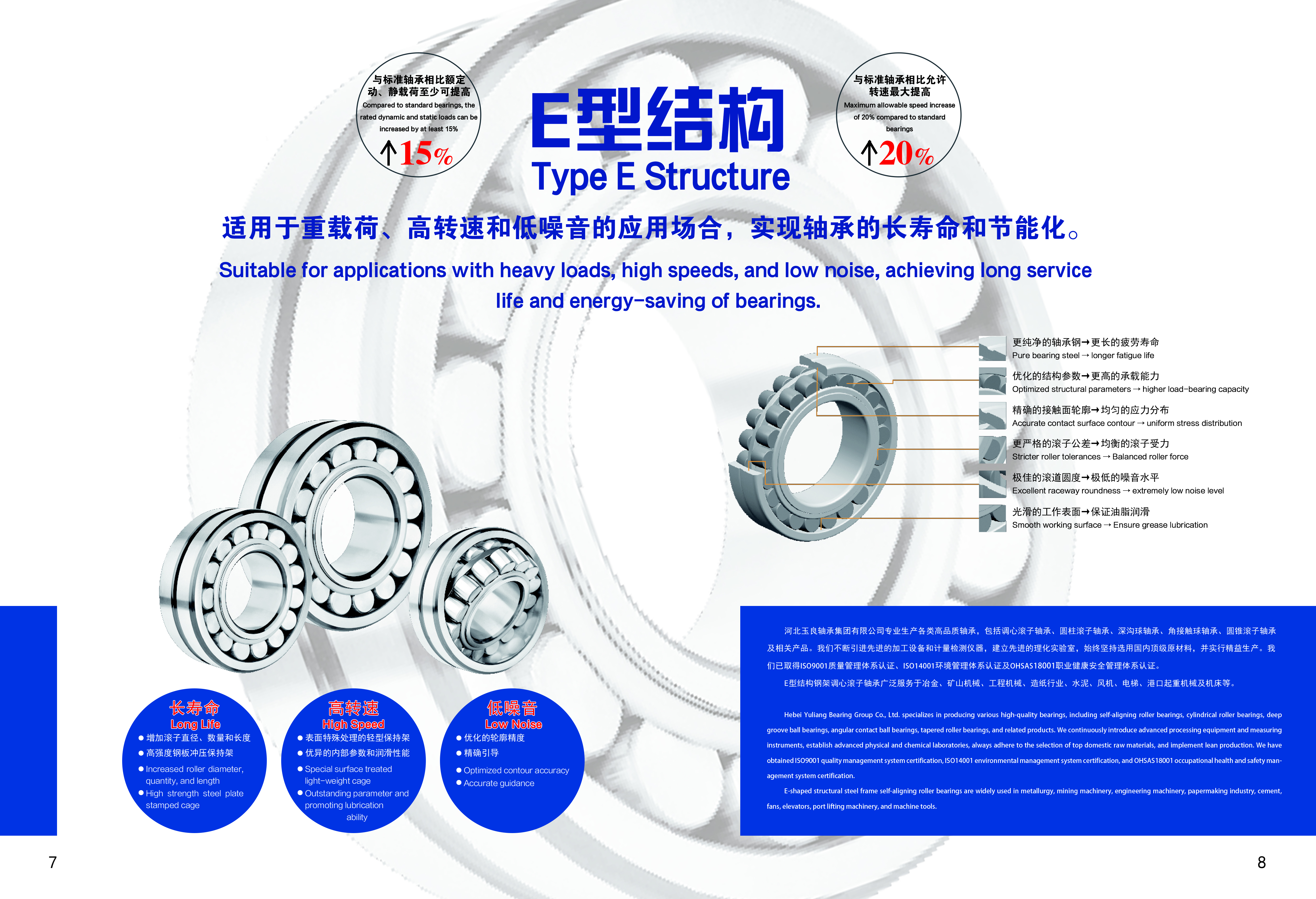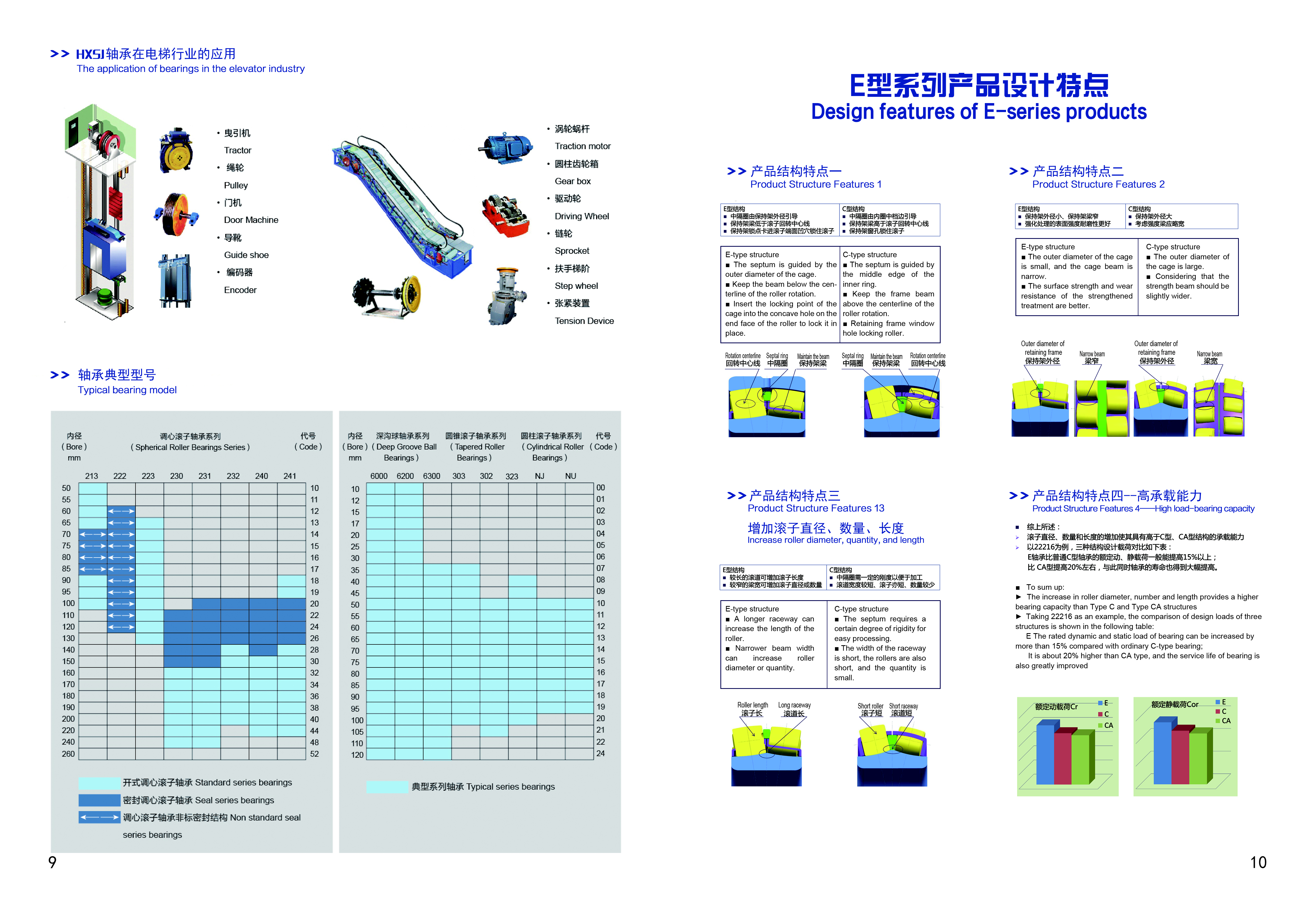 按照瑞典最新型的工艺设计,采用对称球面滚子,两片淬火钢板冲压保持器,内圈无挡边和一个采用外引导的中挡圈。特点:中挡圈靠近外圈可以改善滚子端面与挡圈接触处的润滑,它的作用是减小轴承摩擦,有助于在非载荷区内引导滚子,并协助滚子进入载荷区,同时滚子长度加大,粒数增多,增加负荷。